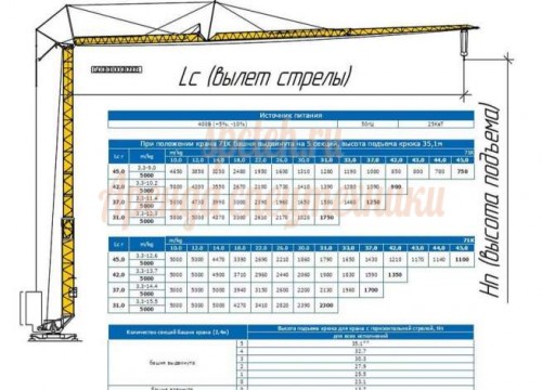 Длинна стрелы: 60.0 м.